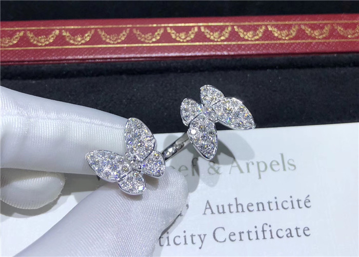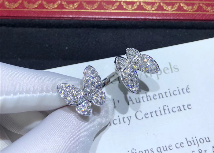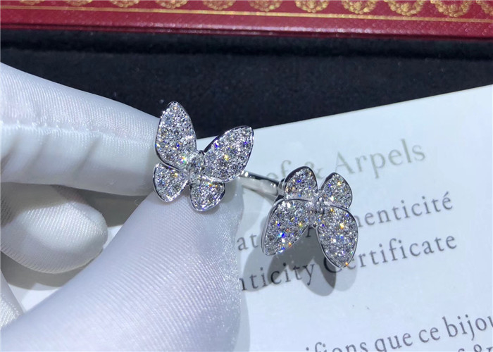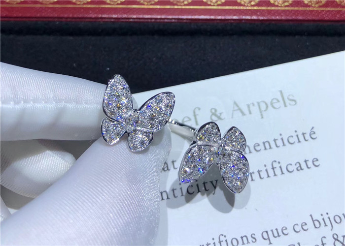 18K ouro branco Custom Brand Dois borboleta anel de diamante simples anel de ouro com diamante