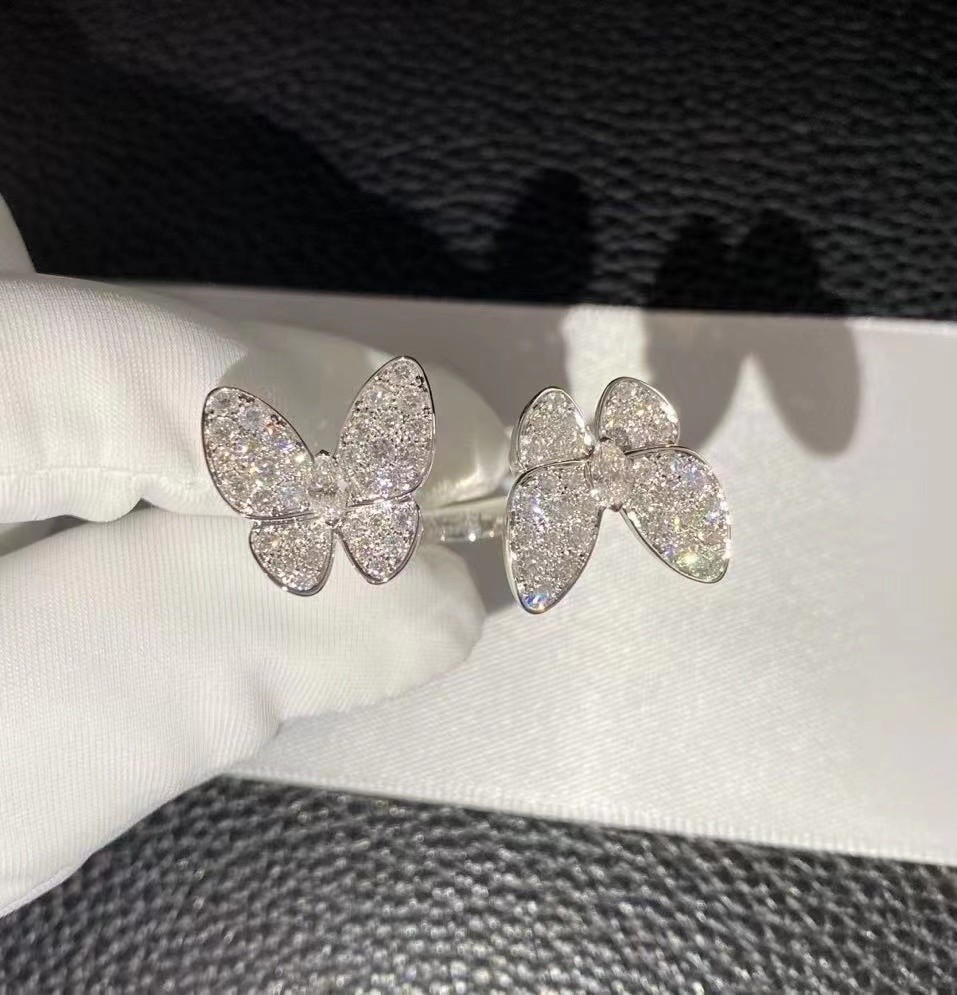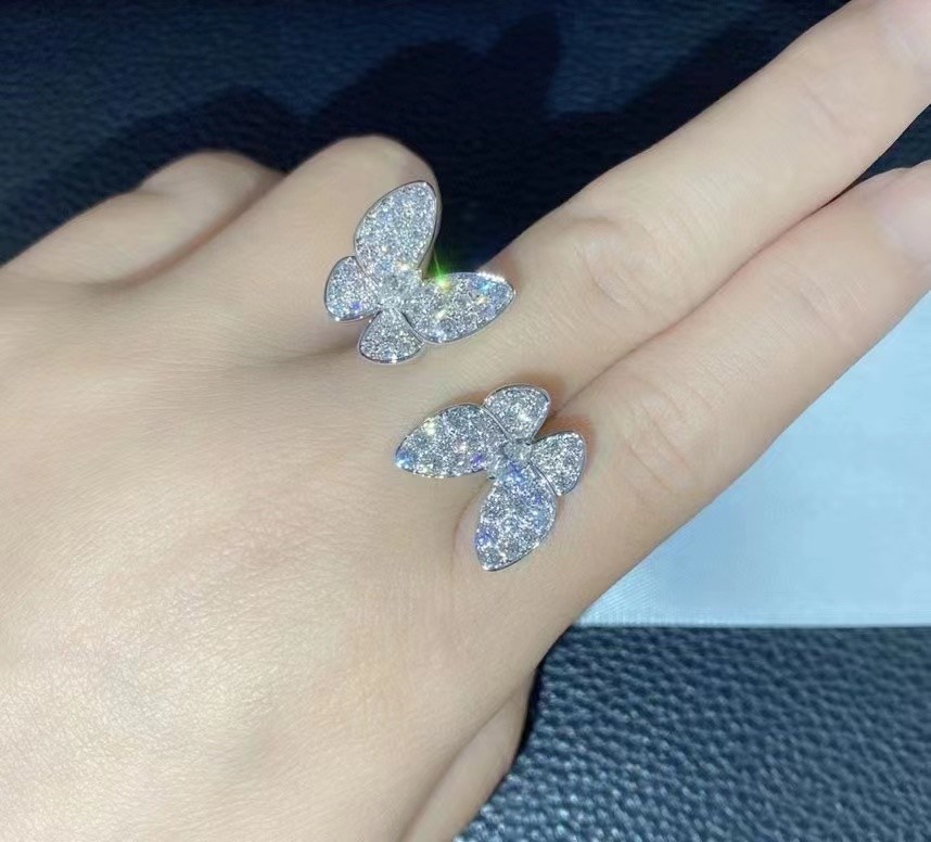 Custom Brand 18k White Gold Tow Butterfly Diamond Pave Between the Finger Ring para fábrica de jóias de Shenzhen